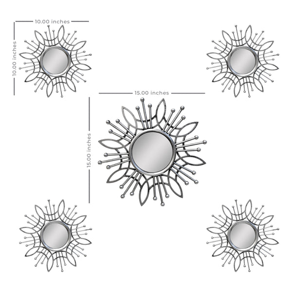 Watch your plain wall come to life with this set of silver mirrors. Each mirror has a floral-themed design, highlighted by a round mirror with gracefully curved borders and burst accents, making it a suitable centerpiece for your traditional home.