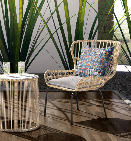 Bold in every right of its own with an eclectic blend of colors, this Blue Orange Cloverleaf Indoor Outdoor Zippered Throw Pillow is a staple for the contemporary flower-child aesthetic. The cloverleaf patterns in the relaxing blues and greens against the lively orange tones create the perfect harmony of neutrals and organics. Crafted from premium quality broadcloth fabric to ensure a sturdy construction with a soft hand, giving a plush look to your indoor and outdoor settings. The soft polyfill inserts offer a luxurious and cozy feel while the zippered closure makes the cover easy to remove and clean. Standing out in fashion and function, this decorative throw pillow will add colors and comfort to your modern or bohemian home. 16” x 16” x 5”