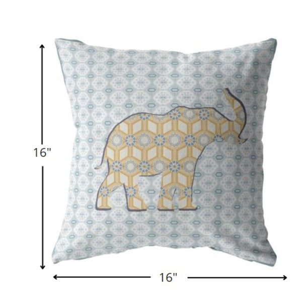 Standing out in its utmost simplicity, this Blue Yellow Elephant Indoor Outdoor Throw Pillow will evoke a boho-chic vibe into your home. The soft shades of blue on the base are highlighted by an elephant silhouette in playful yellow geometrics to introduce a modern element to this pillow. Crafted from premium quality broadcloth fabric to ensure a sturdy construction with a soft hand, making it an ideal accent to add a plush look to your indoor and outdoor settings. This pillow is blown and closed with a durable polyfill insert, making it super soft and cuddly. If you’re looking for a minimally modern addition to your interior décor, go for this decorative throw pillow that will anchor your living space with style and grace. 16” x 16” x 5”