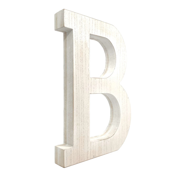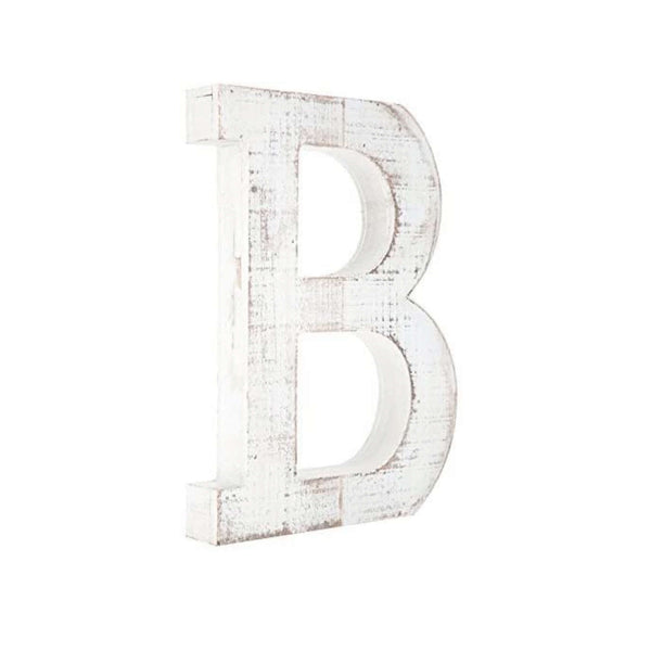 Add some personalization to your space with this Distressed White Wash Wooden Initial Letter Sculpture. Large in size, the 15.75"h letter can be a great accent to your living room, kitchen, entrance foyer, children's bedroom and more. Use to spell out a monogram or create a word to add some creative and special decor to your room. Crafted from MDF in a natural rustic and distressed white finish, the letter can be used as is, re-painted a different color, or stained, making it a fun option for a DIY craft project. Comes ready to hang but is also designed to be free standing to sit on a table, ledge, mantel, dresser, desk or bookshelf. 15.8" x 11.5" x 2.3"