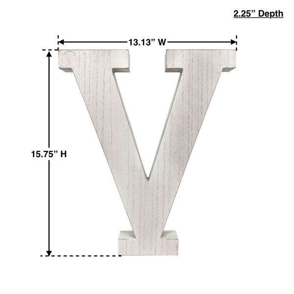 Add some personalization to your space with this Distressed White Wash Wooden Initial Letter Sculpture. Large in size, the 15.75"h letter can be a great accent to your living room, kitchen, entrance foyer, children's bedroom and more. Use to spell out a monogram or create a word to add some creative and special decor to your room. Crafted from MDF in a natural rustic and distressed white finish, the letter can be used as is, re-painted a different color, or stained, making it a fun option for a DIY craft project. Comes ready to hang but is also designed to be free standing to sit on a table, ledge, mantel, dresser, desk or bookshelf. 15.8" x 13.1" x 2.3"