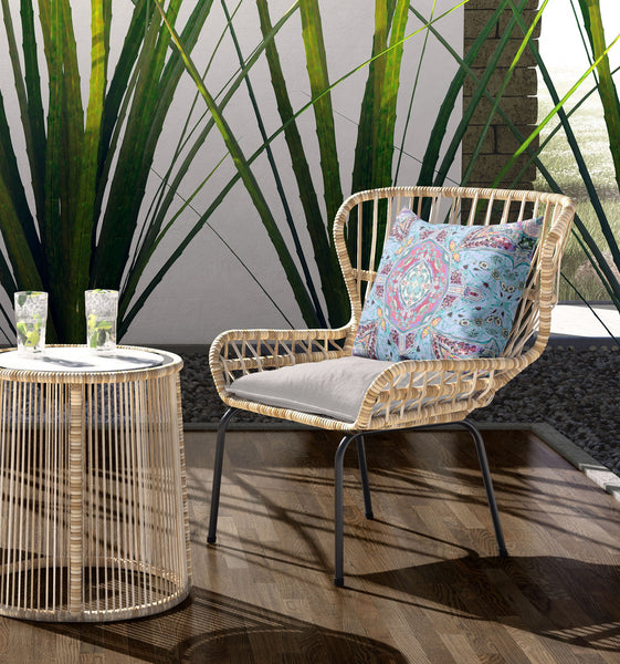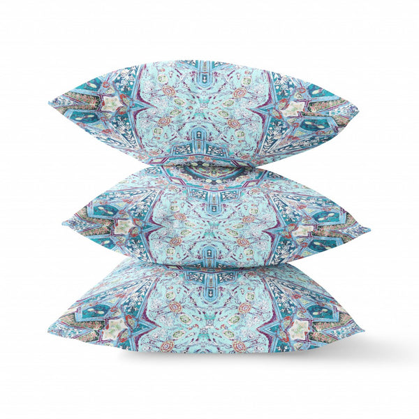 Bring a traditional boho-chic aesthetic to your house with this lovely Light Blue Boho Flower Indoor Outdoor Zippered throw Pillow that combines geometric and floral designs with modern linework. The soft-tone pastel palette elevates the details in the calming shades of blue and pink in the most appealing way to bring visual calm to the look. The cushion's high-quality digital print has been intended to last for years while retaining its color intensity. Manufactured with high-quality broadcloth fabric, this pillow is made to last long in both indoor and outdoor settings while preserving its color intensity to keep the pristine look for years to come. The soft polyester fill insert gives this throw pillow a luxurious fluffy nature and cuddly feel while the seamless zipper and removable cover makes the cleaning hassle-free. If you are looking for an eye-catching element to add to your home, this unique take on traditional motifs will suit any modern, contemporary, or bohemian setting. 16” x 16” x 5”