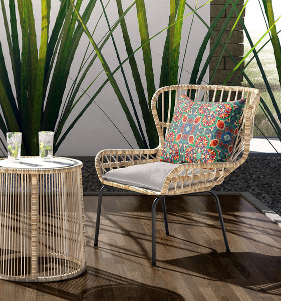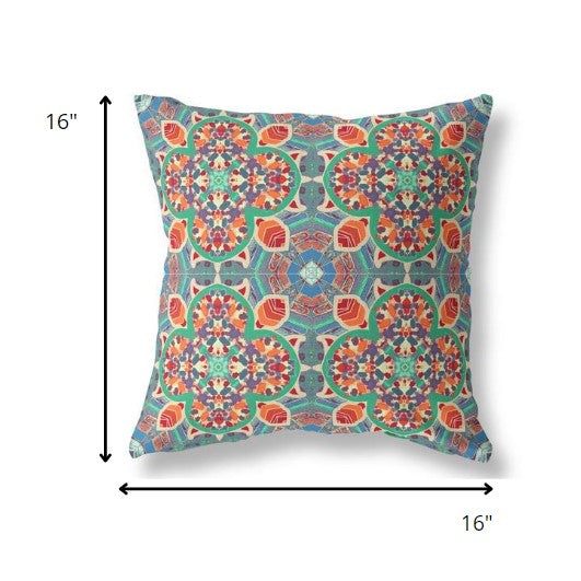Enliven your living space with this stunning Orange Green Cloverleaf Indoor Outdoor Throw Pillow that features a palette of colorful hues to bring a bohemian essence to your home. The intriguing cloverleaf-like patterns exhibit vibrant shades of warm reds and oranges with cool blue and jade tones to strike a perfect balance. This blown pillow is crafted with topnotch broadcloth fabric, which is sturdy yet soft to the touch with a silky smooth surface texture, making it a great decorative and practical accent for indoor and outdoor settings. The soft and fluffy nature comes from the regular polyfill insert that provides a comfortable platform for your head and neck to maximize relaxation. Make your living space look and feel more welcoming with this beautiful decorative pillow thatâs meant to add colors to your interior décor. 16â x 16â x 5â