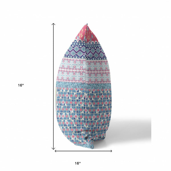 Emphasizing a boho-chic vibe in its decorative detailing, this Pink Teal Patch Zippered Suede Throw Pillow will add a feeling of refreshment and cheerfulness to your interior while accentuating a contemporary flair. The intricately embellished floral and geometric design in salmon pink, blue, white, and pale yellow makes this pillow a spectacular piece of decor to adorn your living room. Made from top-notch suede fabric which is highly durable to last for a long time, while the soft and smooth surface texture provides a glossy sheen for a plush appearance. The soft polyfill insert imparts optimal comfort with a plush and fluffy look while the zippered closure makes the pillow cover easy to take off and wash. Redefine your interior look with this cool-toned decorative throw pillow that stands out in fashion and functionality. 16" x 16" x 5"