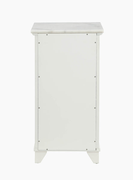 whether you want this classic cabinet in your bedroom or dressing room, it will seamlessly anchor any existing setting. beautifully fashioned with engineered wood frame, this accent piece has got an appealing profile that will quickly become a focal point in any room. it features a marble top with a drawer and a wooden door with demo drawers design on the bottom part, meaning there is ample space for keeping and organizing your personal essentials. the overall construction is creatively finished in white that can easily match any existing room decor.