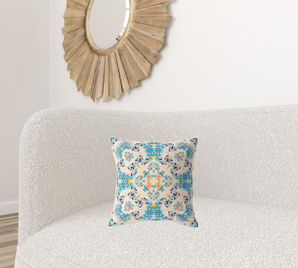 This off white and blue colored decorative accessory is made from high grade broadcloth that makes it soft and long lasting. Great to use on its own or mix with other decorations for the perfect look. You can be certain that you'll be leaving an impression with this unique piece. 5" H x 16" W x 16" D