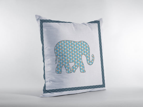 Adorn your home with the simplistic beauty of this Blue White Elephant Zippered Suede Throw Pillow and let it brighten up your home. The chaste design of this pillow highlights the charming elephant print in the middle with a sophisticated border all garnished in shades of blue on a radiant white backdrop curates an enthralling visual. The pillow is draped in a luxurious suede fabric with a zippered, removable cover, making it very easy to clean while ensuring a soft and luxurious feel on the touch. This pillow amicably blends in with contemporary furniture and is the idyllic bohemian accent piece to give your home a subdued yet tasteful look. 16” x 16” x 5”