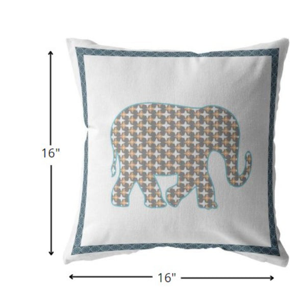 Combining simplicity and sophistication in an artistic expression, this opulent Gold White Elephant Boho Suede Throw Pillow emanates a rich boho-chic aesthetic in its pattern and palette. With a gleaming gold and gray patterned elephant motif at the center and a spruce blue border over a clean white base, this pillow accentuates modernity with a bohemian flair. Draped in a lush suede fabric, this pillow is not only soft and smooth on the touch but also eco-friendly, easy to clean, and very robust. The blown and closed pillow eludes comfort and softness from its polyester filling and is ideal to be used in any type of setting. If you want to present a bohemian aesthetic in your home alongside a contemporary vibe, this decorative throw pillow will be the perfect piece to pair with your sofa set, bed, or couch. 16â x 16â x 5â