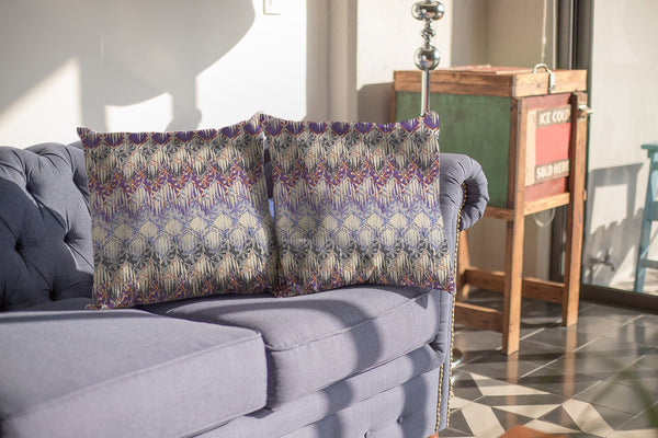 Designed in multiple layers of cool-toned hues, this Magenta Cream Hatch Indoor Outdoor Zippered Throw Pillow will be an eye-soothing accent to enhance the style and elegance of your boho-chic decor. The hatch-like pattern combining magenta, ice blue, and white on a cream-toned base is sure to allure the gaze and accentuate an outstanding visual treat with a bohemian refreshment. Ideal for indoor and outdoor usage, this pillow is crafted from premium quality broadcloth fabric which ensures durability, soft surface texture, and easy cleaning. The soft polyfill insert offers a luxurious and cozy feel while the zippered closure makes the cover easy to remove and clean. Bring a dramatic boho statement in your living space with this magnificent decorative cushion, which will complement any light or dark-toned décor. 16â x 16â x 5â