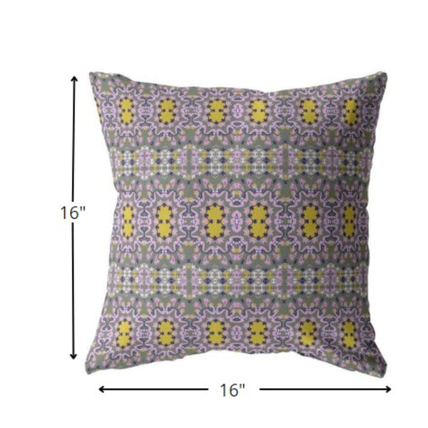 The intricacy of the patterns and vibrancy of the palette in this Purple Yellow Geofloral Zippered Suede Throw Pillow is sure to add a feeling of cheerfulness to your living space with a bohemian flair. The floral patterns in pale purple and mustard yellow are geometrically fashioned over a sage green backdrop, making this pillow an eye-catching accent to adorn your boho-chic home. The velvety-soft aesthetic of the eco-friendly suede fabric provides a classy look while ensuring durability for regular use. The premium quality soft polyfill insert makes the blown and closed pillow utterly comfortable with a luxurious feel on the touch. Bring an outstanding lavishness and spectacular vibe into your living room with this colorful decorative throw pillow. 16” x 16” x 5”
