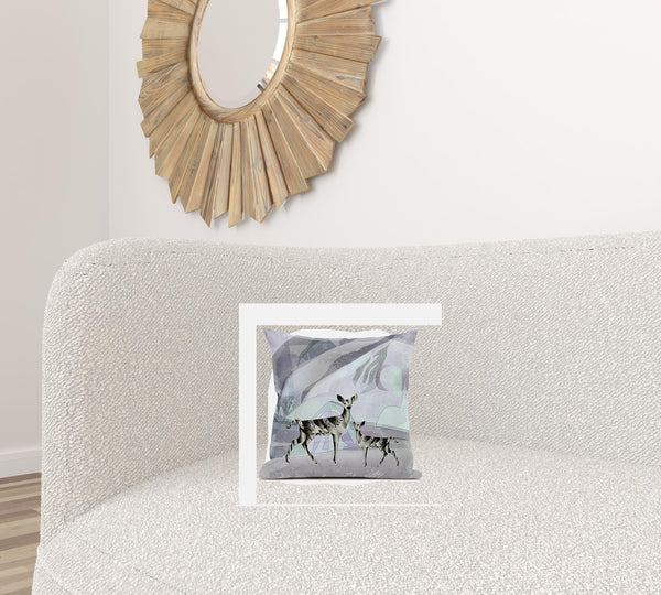 The perfect complement to your sofa, favorite chair, or bed, this 16x16 black purple brown deer blown seam broadcloth animal print throw pillow is a great decorative accent. This black purple brown colored decorative accessory is made from high grade broadcloth that makes it soft and long lasting. Makes a perfect decorative addition for anyone who loves a stylish look and feel. A great decorative accessory for your favorite chair, to accent your sofa, or to use as part of your bed ensemble. 16" H x 16" W x 5" D