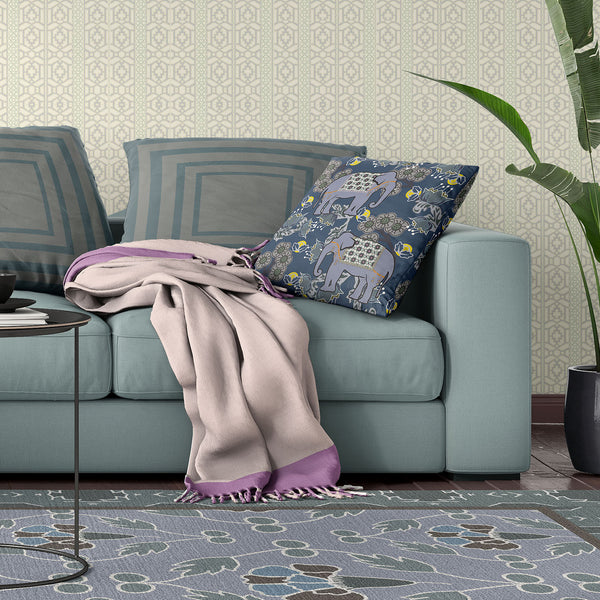 This 16x16 gray blue brown elephant blown seam broadcloth animal print throw pillow will add a beautiful decorative accent to your decor. This charming decorative accent is expertly made of high grade broadcloth in a gray blue brown coloration. Makes a perfect decorative addition for anyone who loves a stylish look and feel. A great decorative accessory for your favorite chair, to accent your sofa, or to use as part of your bed ensemble. 16" H x 16" W x 5" D