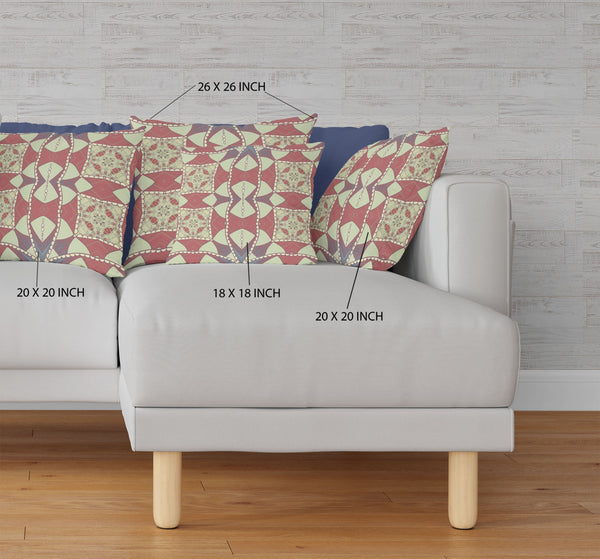 Unique and decorative, this comfortable 16"x16" muted magenta yellow zippered suede geometric throw pillow will leave a lasting impression. The muted magenta yellow coloring of the soft and long lasting suede will look great in most any space. Great to use on its own or mix with other decorations for the perfect look. You can be certain that you'll be leaving an impression with this unique piece. 5" H x 16" W x 16" D