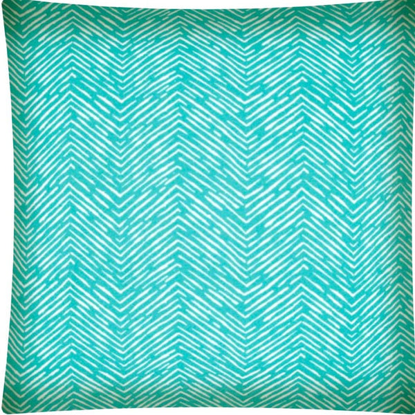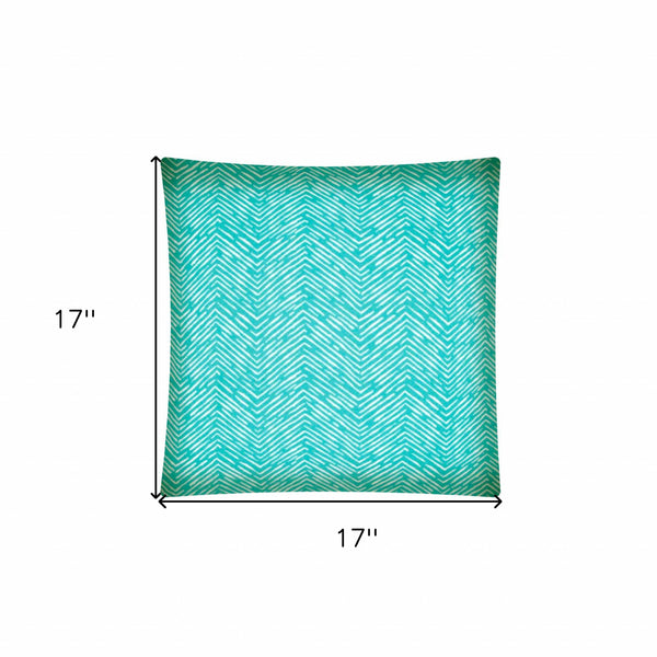 Unique and decorative, this comfortable 17" x 17" turquoise and white zippered polyester chevron throw pillow cover will leave a lasting impression. This turquoise and white hued piece represents quality construction, expertly made from high grade polyester. Makes a perfect decorative addition for anyone who loves a stylish look and feel. You can be certain that you'll be leaving an impression with this unique piece. 17" H x 17" W x 0.25" D
