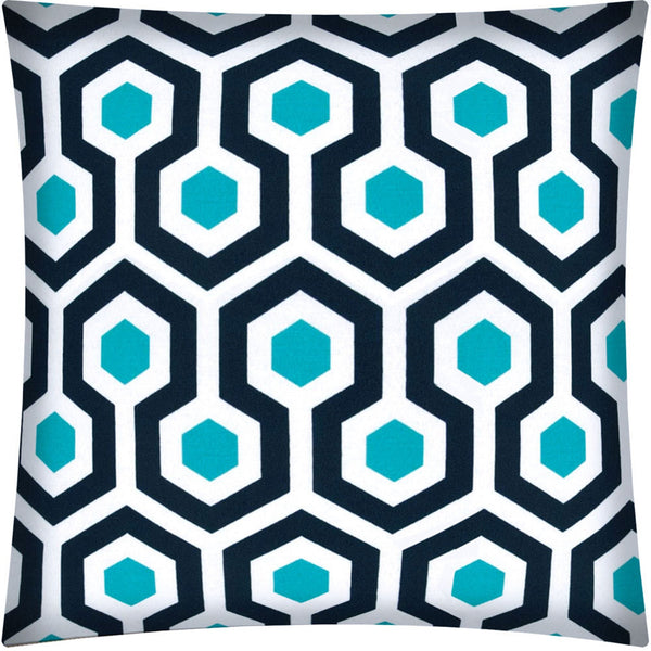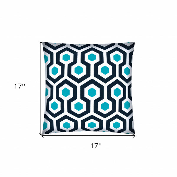 This 17" x 17" white navy and aqua zippered polyester geometric throw pillow cover will add a beautiful decorative accent to your decor. This charming decorative accent is expertly made of high grade polyester in a white navy and aqua coloration. Makes a perfect decorative addition for anyone who loves a stylish look and feel. You can be certain that you'll be leaving an impression with this unique piece. 17" H x 17" W x 0.25" D