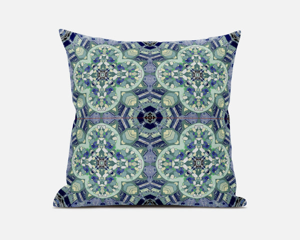 You could almost feel the ocean with this cool-toned Aqua Blue Floral Indoor Outdoor Throw Pillow Aqua Blue Cloverleaf Boho Suede Throw Pillow in your modern abode. The harmony of the jewel-toned greens with the aqua, blue, and indigo accents embedded into the clover-like geometric emblem make this throw pillow a visual representation of serenity. The silky smooth and durable suede fabric gives the piece an appealing texture while ensuring enhanced durability to serve you for years. This blown and closed pillow is finished to perfection with a soft and durable polyfill insert for a fluffy appearance, making it an ideal accent piece in terms of fashion and functionality. The composition created between the calm blues and jewel-like greens on the floral motifs of this decorative pillow is sure to induce a calm and comforting tone into your boho-chic home. 18â x 18â x 5â