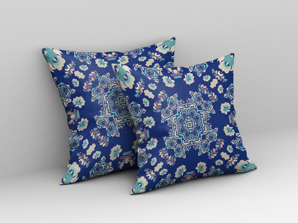 Representing a floral haven in the color of an evening sky, this Blue Cream Wreath Indoor Outdoor Zippered Throw Pillow is an exemplary piece to add confidence and serenity into your contemporary living space. The alluring floral wreath in shades of cream, cyan, and purple is beautifully contrasted over a vivid cobalt blue base that is sure to draw attention in an instant. Crafted from premium quality broadcloth fabric to ensure a sturdy construction with a soft hand, making it an ideal accent to add a plush look to your indoor and outdoor settings. This pillow features a durable polyfill insert, making it super soft and cuddly while the zippered closure has a seamless finish that aids in removing the cover with ease for cleaning. The pulsating hues and intriguing design pattern make this throw pillow a stunning decorative accent for any modern, contemporary, or transitional home. 18” x 18” x 6”