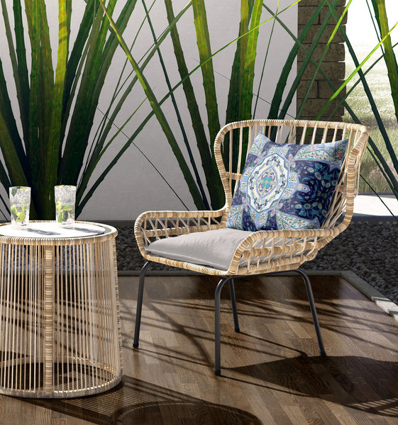 Binding between trend and tradition in its exquisite design patterns, this Indigo Blue Floral Geo Indoor Outdoor Zippered Throw Pillow is sure to satisfy the needs of any modern or bohemian home. This design comes in pastel tones with a blend of indigo and light blue to elevate the floral medallion artwork and the ceremonial geometric shapes for aesthetic wonder. Crafted from premium quality broadcloth fabric to ensure a sturdy construction with a soft hand, making it an ideal accent to add a plush look to your indoor and outdoor settings. This pillow features a durable polyfill insert, making it super soft and cuddly while the zippered closure has a seamless finish that aids in removing the cover with ease for cleaning. The lovely fusion of color and intriguing patterns makes this decorative throw pillow an ideal accent for a range of interior themes and decors. 18” x 18” x 5”