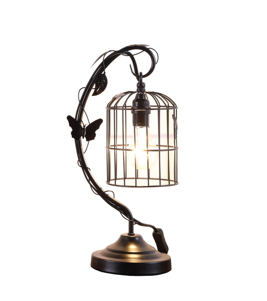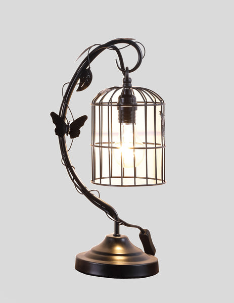 Update your home decor with this beautiful 18” Modern Black Butterfly Cage Table Lamp. This statement piece is made from high quality metal and has a unique mix of modern and classic design. This lamp features a twisting sculpted black vine with butterflies and leaves, which support the lampshade. The lampshade in this lamp is an adorable birdcage dome with a single bulb resting inside, powerful enough to light up the room with a soft and bright glow. This fixture easily exudes luxury and elegance, ensuring that it will draw the attention of any guest. 17.5” x 5” x 8.25”