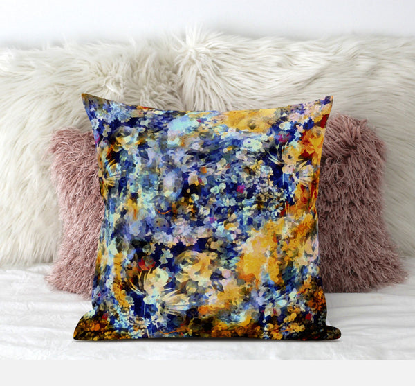 Incorporating an artistic spin on natural elements, this gorgeous Orange Indigo Springtime Suede Throw Pillow will induce an eye-catching contemporary flair into your home. The dreamy fusion of hues in Sunrise orange and indigo transfigures into a piece of art that draws in the attention of viewers. Made to experience a sense of luxury, this pillow is crafted from the robust yet soft-to-the-touch suede fabric that is known for its appealing look and texture. This blown pillow features a high-quality polyfill insert for optimum comfort while making the piece super fluffy for a luxurious feel on the touch. If you desire a soothing, positive atmosphere in your home, opt for this luscious decorative pillow that will effortlessly accentuate your contemporary home. 18” x 18” x 5”