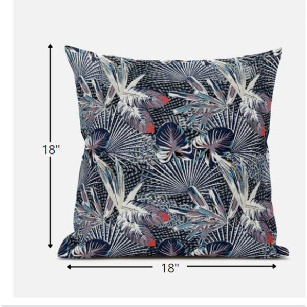 Balancing botanical elements with a bold color palette, this stunning Purple Indigo Tropical Zippered Suede Throw Pillow carries the essence of boho to layer into your coastal home. Flaunting an elaborate print of tropical leaves in a shroud of dusky purple, indigo, and white forming a canopy over an indigo-gray base, the pillow stands out as the attention-grabbing piece in any room. The silky smooth surface texture of the suede fabric gives the pillow a plush and luxurious feel on the touch while making it highly durable to last for a long time. The zippered closure makes the cover easily removable for hassle-free washing while the soft polyfill insert maximizes comfort giving the pillow a fluffy look. Accentuate the coastal aesthetics in your home with the awe-inspiring print of this decorative throw pillow that can instantly transport the interior style to a tropical paradise. 18” x 18” x 5”
