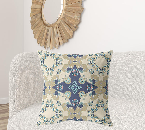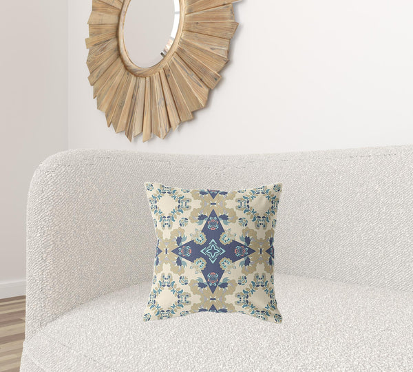 This cream and blue colored decorative accessory is made from high grade broadcloth that makes it soft and long lasting. Makes a perfect decorative addition for anyone who loves a stylish look and feel. A great decorative accessory for your favorite chair, to accent your sofa, or to use as part of your bed ensemble. 5" H x 18" W x 18" D