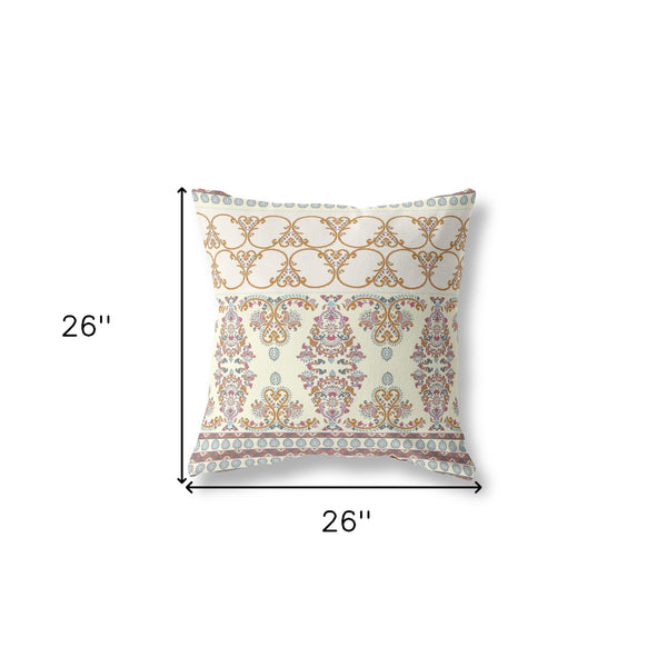 This off white and orange hued piece represents quality construction, expertly made from high grade broadcloth. Great to use on its own or mix with other decorations for the perfect look. A great decorative accessory for your favorite chair, to accent your sofa, or to use as part of your bed ensemble. 5" H x 18" W x 18" D