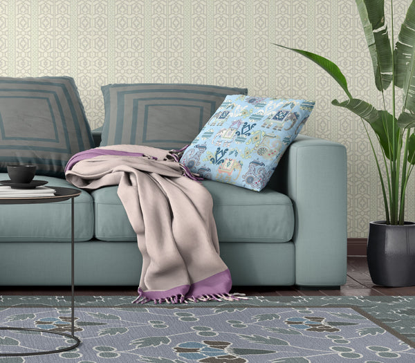 This charming decorative accent is expertly made of high grade broadcloth in a sky blue and white coloration. Makes a perfect decorative addition for anyone who loves a stylish look and feel. A great decorative accessory for your favorite chair, to accent your sofa, or to use as part of your bed ensemble. 5" H x 18" W x 18" D