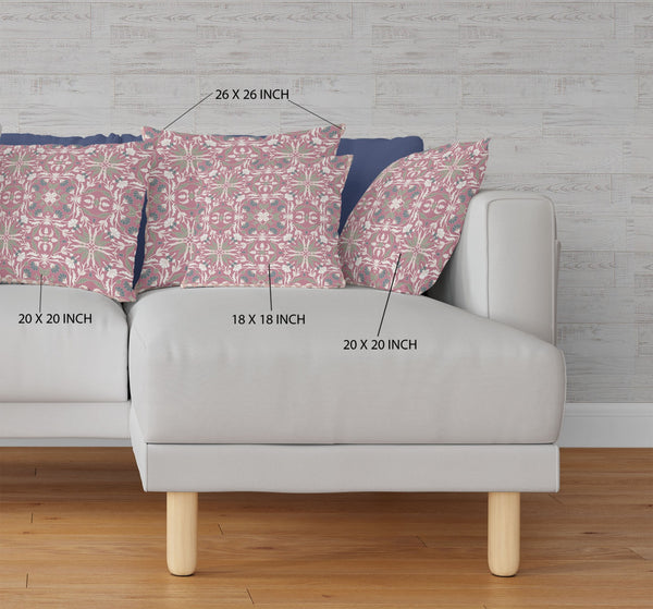 Evoke a sense of comfort and affection with this visually appealing Magenta White Paisley Indoor Outdoor Throw Pillow. The delicate floral designs in white and dove gray over a pale magenta base add a spectacular bohemian vibe with modern essence. Crafted from the finest broadcloth fabric to ensure durability with a soft hand, it’s the ultimate accent to add a luxurious look to your indoor and outdoor spaces. This blown and closed pillow is filled with 100% polyester fiber, giving it a lush, springy feel with a fluffy nature to provide the utmost comfort every time you lean on it. Bring home this charming boho-chic throw pillow to spice up the bohemian aura of your abode. 18” x 18” x 5”