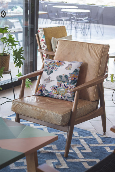 The botanical patterns and stylish palette of this Pink White Butterfly Zippered Suede Throw Pillow are sure to enhance your boho-chic living space with a touch of nature. Flaunting the soft and sophisticated shades of pink, orange, green, and gray, creating the perfect medley of flowery and butterfly prints over a pearl white backdrop, this pillow resembles a finely painted acrylic art on a canvas meant to allure the gaze. Made from high-quality suede fabric which is known for its durability, shiny appearance, and smooth surface texture. This pillow features a high-quality polyfill insert for optimum comfort while making the piece super fluffy for a luxurious feel on the touch, while the zippered cover makes it easy to take off and clean. Evoke a cheery ambiance into your living space with this artfully crafted throw pillow perfect to flaunt amidst boho or contemporary décor. 18” x 18” x 5”