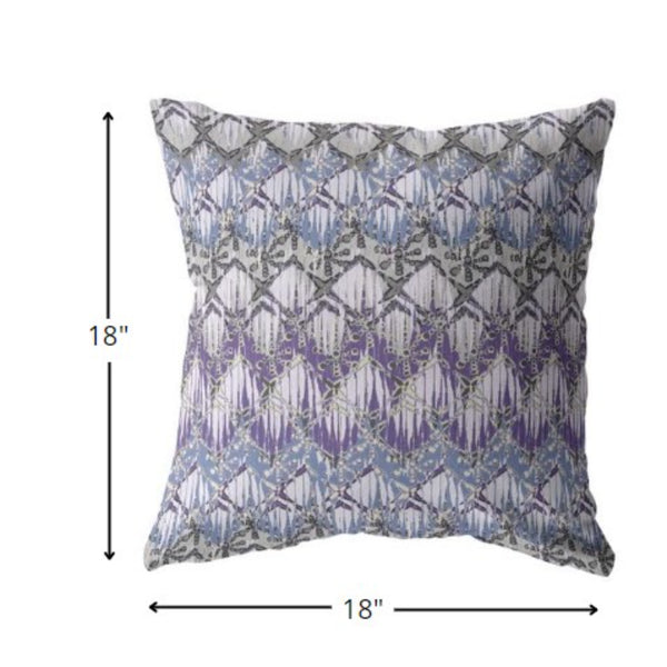 This visually rich Purple Gray Hatch Indoor Outdoor Throw Pillow will be a unique addition to your bohemian decor. Featuring zig-zag hatch-like patterns in cool-toned purple, gray, and ice blue, this pillow will induce a calm and relaxing atmosphere in the room. Crafted from premium broadcloth fabric, this piece ensures that you get the best quality in terms of looks and comfort while making it an ideal accent for indoor and outdoor use. This blown and closed pillow comes with a soft polyfill insert that adds to the plush fluffy look maximizing warmth and comfort. Combining a cool-toned palette with a classic pattern, this decorative pillow is sure to add a blissful bohemian touch to your interior décor. 18â x 18â x 5â