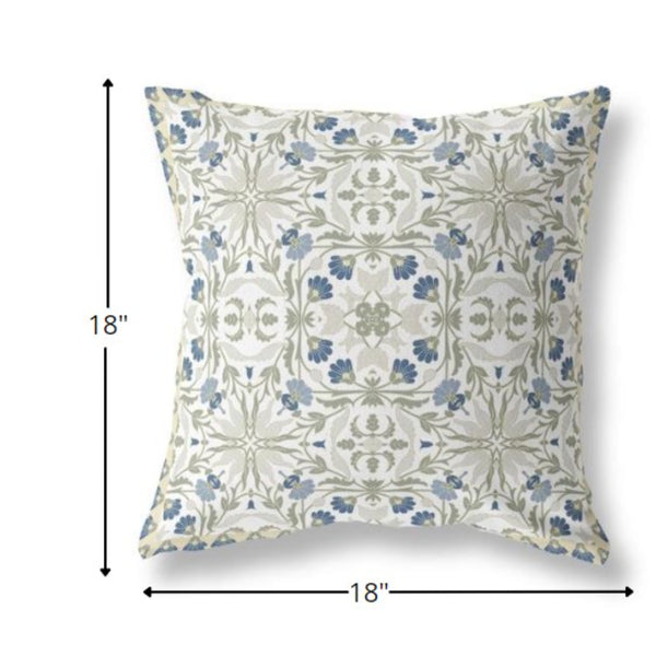 Combining natural elements with neutral hues, this sleek and stylish White Green Paisley Indoor Outdoor Throw Pillow will give rise to a minimalistic boho-chic essence in your home. The soothing tones of white with the intricate floral patterns in sage green, navy, and pale gray create a brilliant work of art that leaves viewers in awe. Made with high-quality broadcloth fabric that is known for its durability to last long while its smooth surface texture offers characteristic sheen. Ideal for both indoor and outdoor usage, this pillow is blown and filled with 100% polyester material for a plush feel and extra fluffiness, making it the perfect accent for style and comfort. Take home this stunning decorative pillow and set a calm and relaxing ambiance in your bedroom, living room, or sitting space. 18” x 18” x 5”