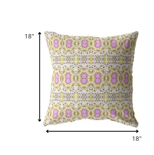 The vibrant color combination of this Yellow Lavender Geofloral Indoor Outdoor Zippered Throw Pillow will bring a bohemian charm into your living space with a playful vibe. Brimming with intricate floral and geometric patterns in soft shades of yellow and pops of lavender over a pure white base to give the pillow a joyful tone with a modern flair. Made with premium broadcloth fabric, this piece ensures that you get the best quality in terms of looks and comfort, perfect for everyday use in indoor and outdoor spaces. The decorative throw pillow features a soft polyfill insert for maximum comfort and durability while the zippered closure ensures a seamless finish making the cover easy to remove and clean. Blending modern style with bohemian fashion, this pillow will surely complement your choice of home decor. 18â x 18â x 5â