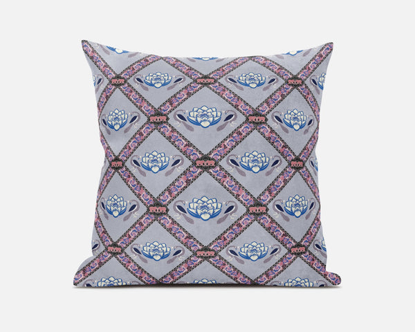 The 18"x18" gray blue pink zippered suede geometric throw pillow is the perfect decorative accessory for your home. High-quality gray blue pink suede has been used to make it it both good looking and hard wearing for everyday use. Makes a perfect decorative addition for anyone who loves a stylish look and feel. You can be certain that you'll be leaving an impression with this unique piece. 5" H x 18" W x 18" D