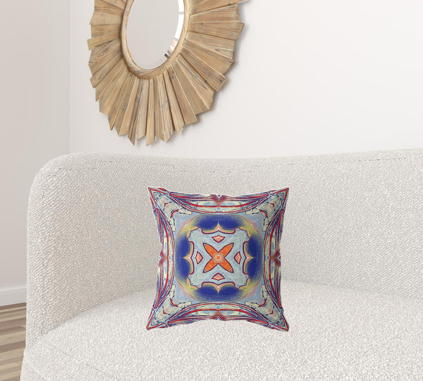 The 18"x18" gray red orange midnight blue zippered suede geometric throw pillow is the perfect decorative accessory for your home. This gray red orange midnight blue hued piece represents quality construction, expertly made from high grade suede. Great to use on its own or mix with other decorations for the perfect look. You can be certain that you'll be leaving an impression with this unique piece. 5" H x 18" W x 18" D
