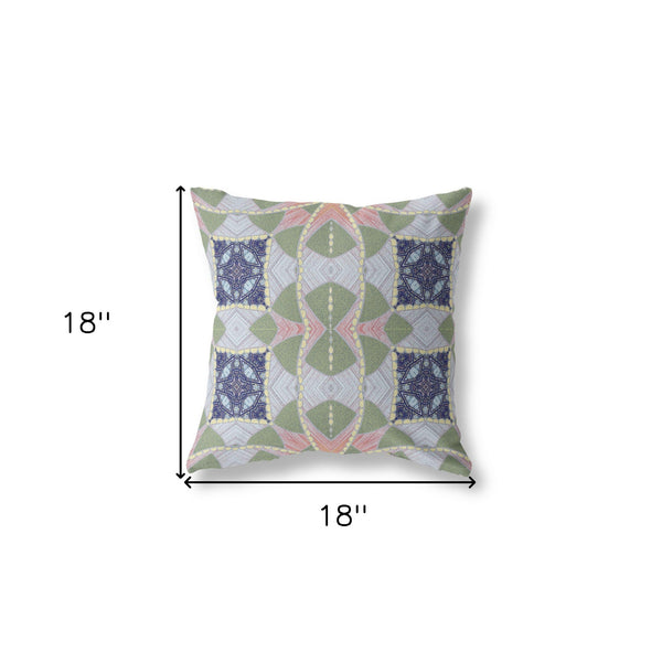 This 18"x18" green pink indigo zippered suede geometric throw pillow will add a beautiful decorative accent to your decor. This green pink indigo colored decorative accessory is made from high grade suede that makes it soft and long lasting. Makes a perfect decorative addition for anyone who loves a stylish look and feel. A great decorative accessory for your favorite chair, to accent your sofa, or to use as part of your bed ensemble. 5" H x 18" W x 18" D