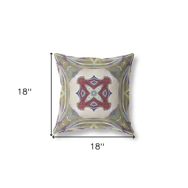 Unique and decorative, this comfortable 18"x18" muted green cream magenta zippered suede geometric throw pillow will leave a lasting impression. High-quality muted green cream magenta suede has been used to make it it both good looking and hard wearing for everyday use. Great to use on its own or mix with other decorations for the perfect look. You can be certain that you'll be leaving an impression with this unique piece. 5" H x 18" W x 18" D
