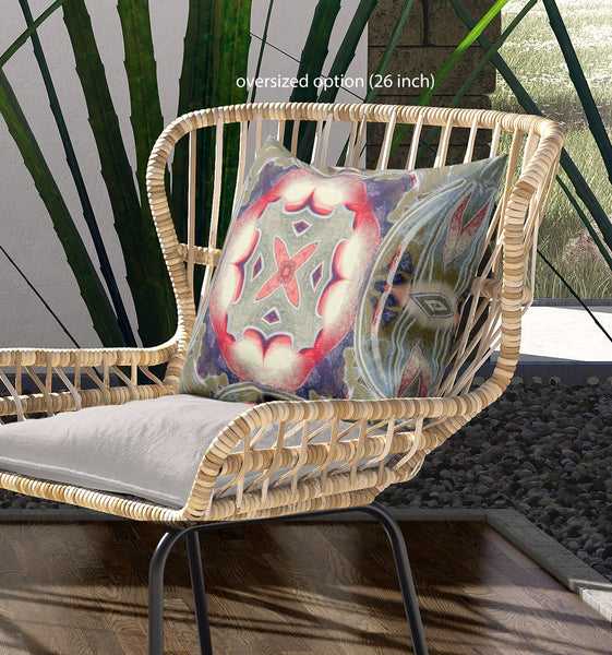 Unique and decorative, this comfortable 18"x18" muted green indigo hot pink zippered broadcloth geometric throw pillow will leave a lasting impression. This muted green indigo hot pink hued piece represents quality construction, expertly made from high grade broadcloth. Great to use on its own or mix with other decorations for the perfect look. You can be certain that you'll be leaving an impression with this unique piece. 5" H x 18" W x 18" D
