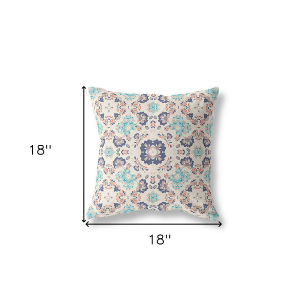 The perfect complement to your sofa, favorite chair, or bed, this 18"x18" white gray and teal zip broadcloth floral throw pillow is a great decorative accent. The white and blue coloring of the soft and long lasting broadcloth will look great in most any space. Makes a perfect decorative addition for anyone who loves a stylish look and feel. A great decorative accessory for your favorite chair, to accent your sofa, or to use as part of your bed ensemble. 6" H x 18" W x 18" D