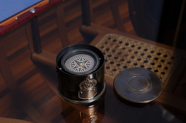 This is a fully functional Drum Compass. It is made of high quality brass. Each component is crafted with the finest craftsmanship. A small gimbaled compass is fitted inside the drum with a detachable cap and an embossed logo outside. Available in antique brass finish. This compass can be used in the field, at sea or stay in the home or office as a great addition to any nautical collection. The item dimensions are: L: 2.6 inches, W: 2.6 inches, H: 2.2 inches.