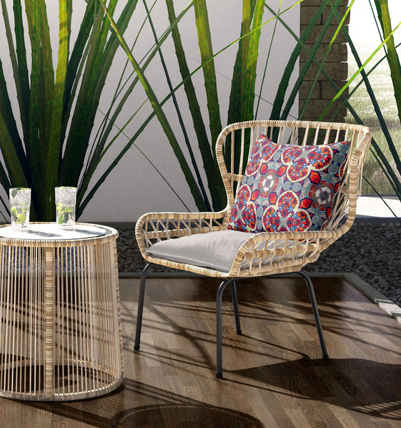 Give your home the gift of bohemian charm and modern elegance with this Red Blue Cloverleaf Indoor Outdoor Throw Pillow that features an alluring palette to stand out even from a distance. Shadowing cloverleaf-like floral structures and geometric motifs in bright red, orange, soft blue, and white, this stunning pillow strikes a harmonious blend of cool and warm tones. The lustrous appearance of the broadcloth fabric adds to the visual appeal of the pillow while the characteristic durability makes this piece last for a long time in both indoor and outdoor settings. Ideal for indoor and outdoor settings, this blown pillow features a soft polyfill insert that makes it super soft and cozy to rest your head or support your back for maximum comfort. Whether you pair this pillow with bold or neutral-themed decors, it will undoubtedly be an alluring accent to behold. 20â x 20â x 5â