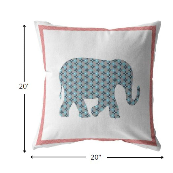Combining an element of nature with a touch of class, this Blue Pink Elephant Indoor Outdoor Zippered Throw Pillow will incite a simplistic boho-chic feel into your home. Flaunting an eye-catching design representing an elephant in dove gray with diamond-star motifs in aqua blue and coral pink borders, the pillow creates an enchanting visual appeal leaving viewers in awe. Made with the finest broadcloth, the pillow boasts longevity and sturdiness, ideal for both indoor and outdoor use. This pillow comes with a premium polyfill insert making the piece super soft and cozy for utmost comfort, while the zippered cover makes it easy to take off for washing. The delightful balance of trend and tradition in this alluring decorative throw pillow makes it a tasteful and sophisticated addition to any boho-chic home. 20â x 20â x 5â