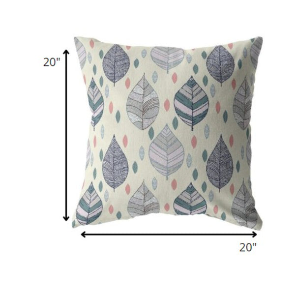 Fashioned to work well with any modern or bohemian setting, this Cream Gray Leaves Indoor Outdoor Zippered Throw Pillow is a calm and comforting accent piece to add a touch of nature into your living room. The cream-toned base is beautifully designed in teal green and gray leaf motifs, accentuating a boho-chic appeal. Crafted from premium quality broadcloth fabric to ensure a sturdy construction with a soft hand, making it an ideal accent to add a plush look to your indoor and outdoor settings. This pillow comes with a soft polyfill insert which makes it super fluffy and cozy to rest on, while the zippered closure gives a seamless finish with added convenience. Simple and subtle with a soft-toned palette, this decorative pillow is sure to add a graceful touch to your interior space. 20â x 20â x 5â