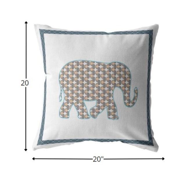 Combining simplicity and sophistication in an artistic expression, this opulent Gold White Elephant Indoor Outdoor Zippered Throw Pillow emanates a rich boho-chic aesthetic in its pattern and palette. With a gleaming gold and gray patterned elephant motif at the center and a spruce blue border over a clean white base, this pillow accentuates modernity with a bohemian flair. Crafted from premium broadcloth fabric, this piece ensures that you get the best quality in terms of looks and comfort while making it an ideal accent for indoor and outdoor use. This pillow is filled with 100% polyester fiber insert, giving it a lavish springy feel with a fluffy nature to provide utmost comfort, while zippered closure makes the cover easy to take off for washing. If you want to present a bohemian aesthetic in your home alongside a contemporary vibe, this decorative throw pillow will be the perfect piece to pair with your sofa set, bed, or couch. 20â x 20â x 5â