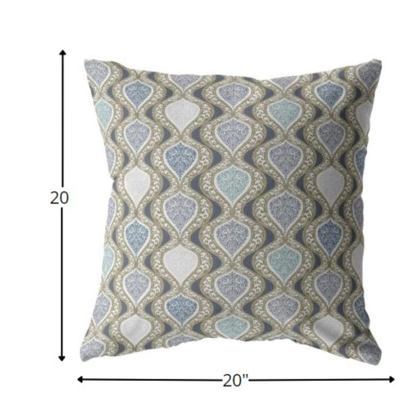 Accentuate a sense of tranquility and boho vibe in your living room with this Gray Ogee Indoor Outdoor Throw Pillow placed against bright-colored decors. The copper-toned ogee pattern combined with soft shades of gray and white palette brings an eye-soothing aesthetic to the piece with a bohemian flair. Made of soft but premium quality broadcloth fabric, it is not only durable to use in indoor and outdoor settings but also ideal for everyday usage while maintaining its colorization. The soft polyester fill insert gives it a luxurious plush look and offers ultimate comfort. Spruce up your living room in a classy yet boho look with this cozy and comforting decorative throw pillow. 20â x 20â x 5â