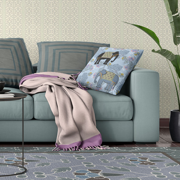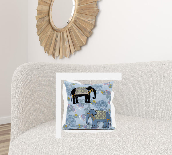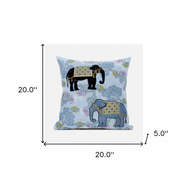This 20x20 sky black white elephant blown seam broadcloth animal print throw pillow will add a beautiful decorative accent to your decor. The sky black white coloring of the soft and long lasting broadcloth will look great in most any space. Makes a perfect decorative addition for anyone who loves a stylish look and feel. A great decorative accessory for your favorite chair, to accent your sofa, or to use as part of your bed ensemble. 20" H x 20" W x 5" D