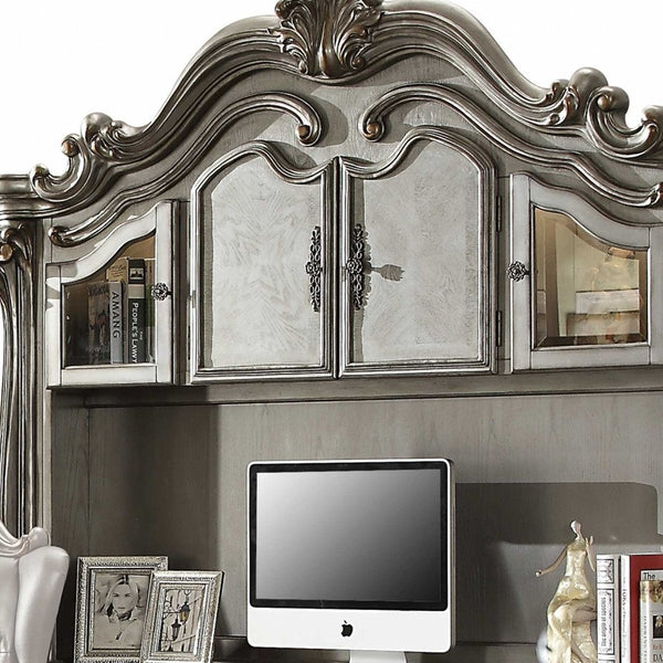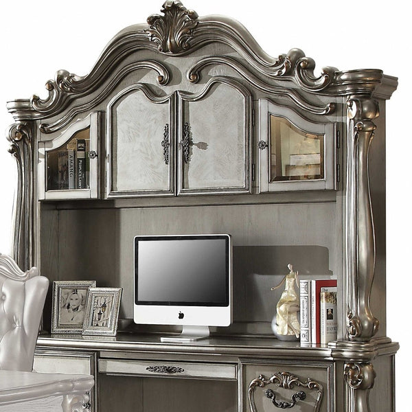 make a spectacular decorative statement in your room or office space with this elegant executive desk and hutch. coming in a unique classic style, this piece wears a rich antique platinum and hand brushed finish that will neatly blend with any existing decor in your home. it features decorative claw legs, an oversize crown and moldings with striking details all over the edges. the stylish piece is creatively designed from selected wood and veneers to add a contemporary look to your home decor.