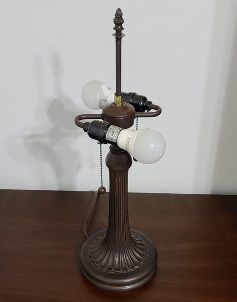 This 23" Tiffany Style Vintage Antique Accent Table Lamp will instantly brighten up your living room. You can tell right away that this is a lovely work of art. The lamp is made up of several hand-cut glass pieces and rich gemstones, all wrapped in copper foil to produce an unquestionably magnificent masterpiece. The lamp also features two pull chains for easy operation. At the bottom, a dark brown base will sit nicely on different surfaces of your nightstand, reading desk, and end table, providing firm support. 12" x 21" x 24"