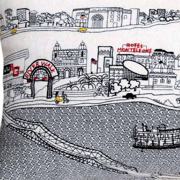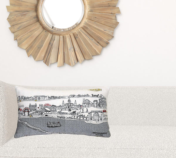 Showcase this famous city, with our Cream Color New Orleans Daylight Skyline Prince Size Lumbar Decorative Pillow. The daylight view of New Orleans from the Mississippi is picture perfect. The gorgeous art features many famous landmarks and references for this city famous for it's Jazz and Food, rendering a modern whimsical way to bring this iconic cityscape to life. Made of a wool/nylon blend, this high quality stitched decorative pillow features black on white embroidered artwork mixed with pops of color that highlight important and recognizable icons from this historical and fun city. This pillow makes a great gift, decorative accent and conversation piece. 4" x 24" x 14"