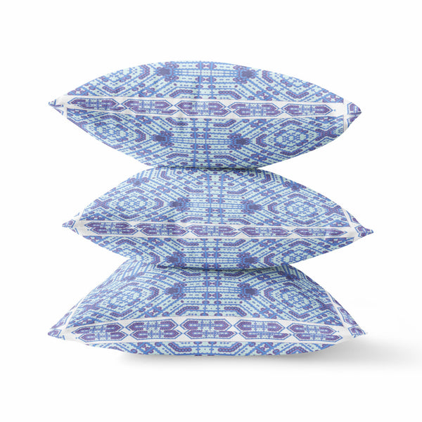 Make your living space look and feel soothing with this Cyan Blue Geostar Indoor Outdoor Throw Pillow that features a calm and cool-toned palette to evoke a relaxing atmosphere in the room. The alluring geometric pattern in soft cyan and blue tones create visual harmony, making this pillow an ideal accent for any modern, bohemian, or coastal setting. With top-notch broadcloth fabric in the construction, this pillow is made to last for a long time while offering a soft and smooth surface texture. This blown and closed pillow comes with a high-quality polyfill insert that makes it super soft and cozy with fluffy nature to maximize comfort. Pair this decorative pillow with light or neutral colored decors to add a refreshing touch to your living room or sitting area. 26” x 26” x 5”